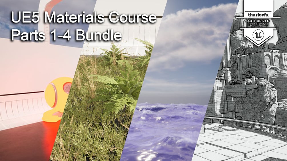 Get all 4 parts of my Unreal Engine 5 Materials Course in one easy package! Introduction to Materials and Environments, World Position Offset Animation, Visual Effecst Materials and Post Process Materials - with full updated content files in Unreal 5.2 and a big discount for buying all 4 together.
